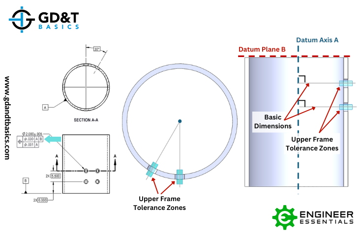 Figure 3: Lower Frame Tolerance Zones are Only Perpendicular to Datum A