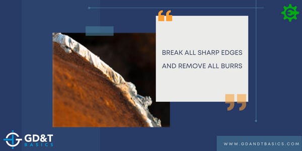 “Break all sharp edges and remove all burrs,” is a common drawing note used to notify the manufacturer that the sharp edges and burrs produced by the manufacturing process must be removed from the part.