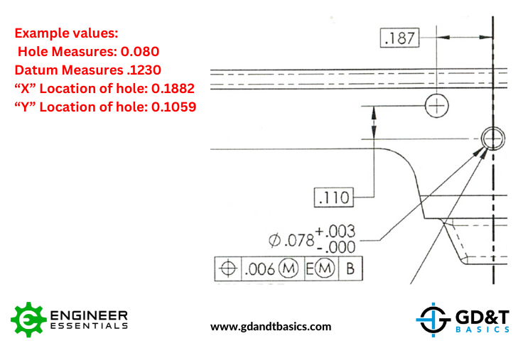In this video, Jason first clarifies the difference between Position and True Position. He then walks through the process of determining whether the given measurement values result in a passing part – explaining how to calculate diametric deviations, potential bonus tolerance due use of the MMC modifier, and the effect of the MMB modifier.